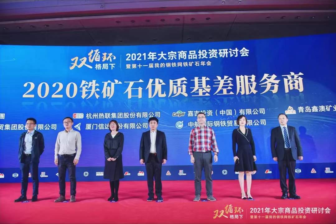 本次會議開幕儀式上,廈門信達(dá)憑借在鐵礦行業(yè)中的多年耕耘和誠信經(jīng)營,獲得“2020鐵礦石長期誠信供應(yīng)商”、“2020鐵礦石優(yōu)質(zhì)基差服務(wù)商”兩項榮譽稱號。