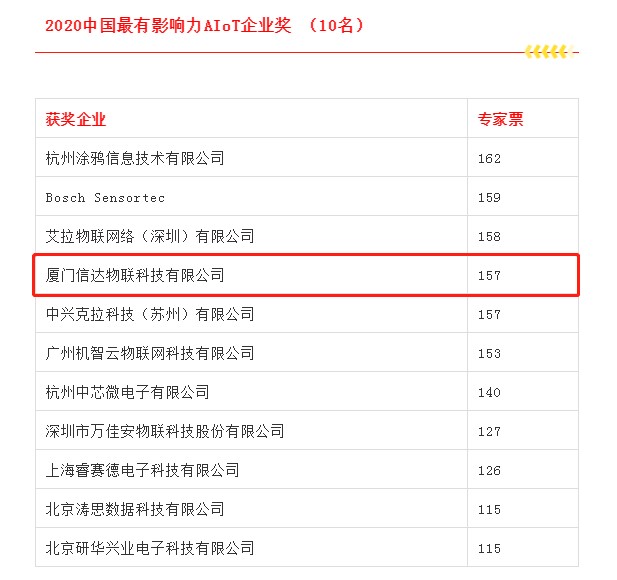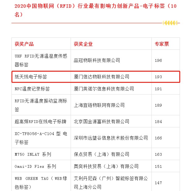 信達物聯(lián)歷經(jīng)大眾投票預熱、專家評委投票等環(huán)節(jié),摘奪“2020中國最具有影響力AIOT企業(yè)獎”和“2020年中國物聯(lián)網(wǎng)(RFID)行業(yè)最具有影響力創(chuàng)新產(chǎn)品獎”兩項桂冠。