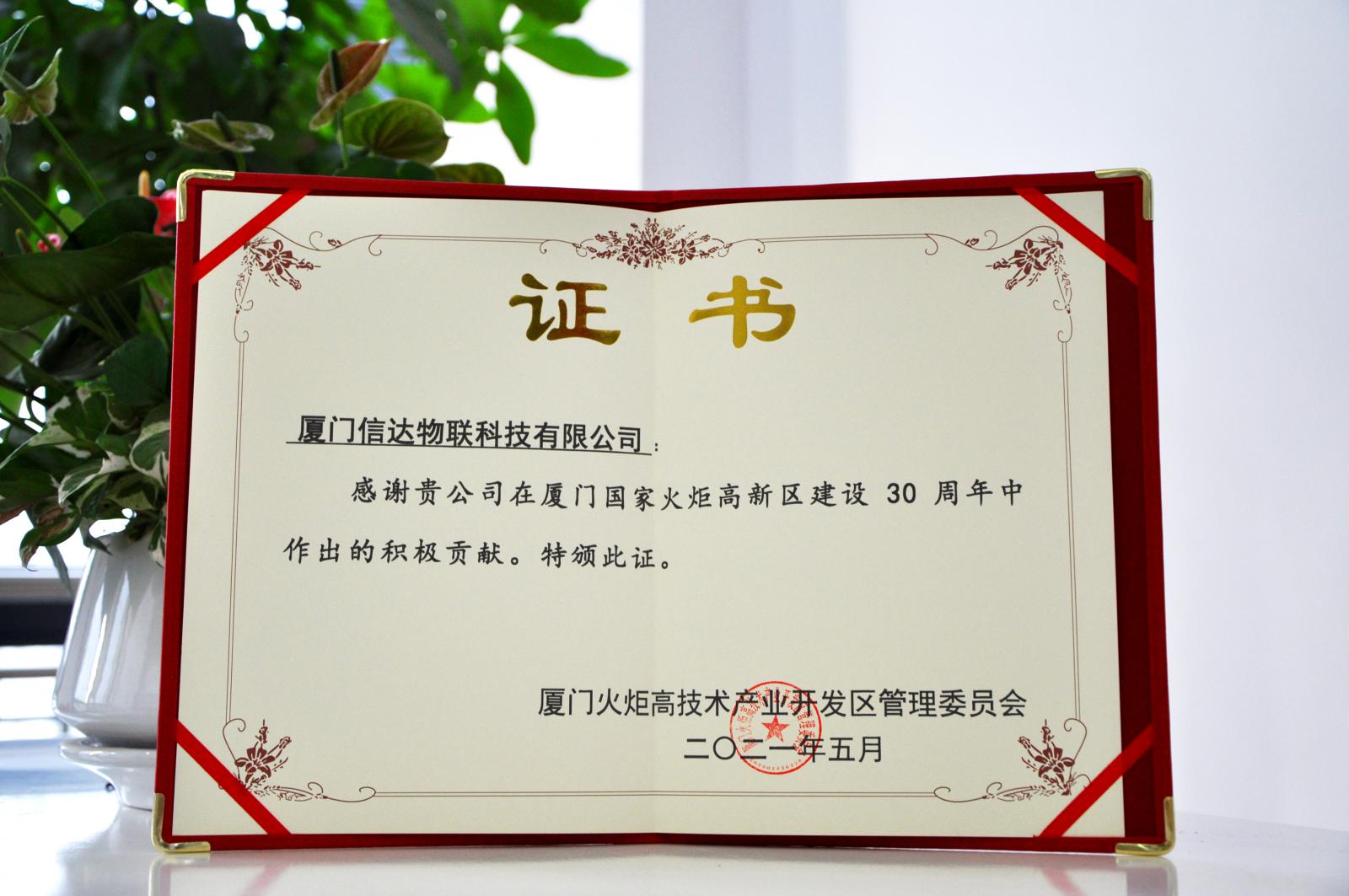 近日,廈門國(guó)家火炬高新區(qū)舉行建設(shè)30周年暨高質(zhì)量發(fā)展再動(dòng)員大會(huì),表彰了為高新區(qū)建設(shè)30周年突出貢獻(xiàn)者,其中包括30家“突出貢獻(xiàn)企業(yè)”、30家“科技創(chuàng)新企業(yè)”、30名“突出貢獻(xiàn)個(gè)人”。廈門信達(dá)物聯(lián)科技有限公司(以下簡(jiǎn)稱“信達(dá)物聯(lián)”)獲評(píng)“科技創(chuàng)新企業(yè)”榮譽(yù)。