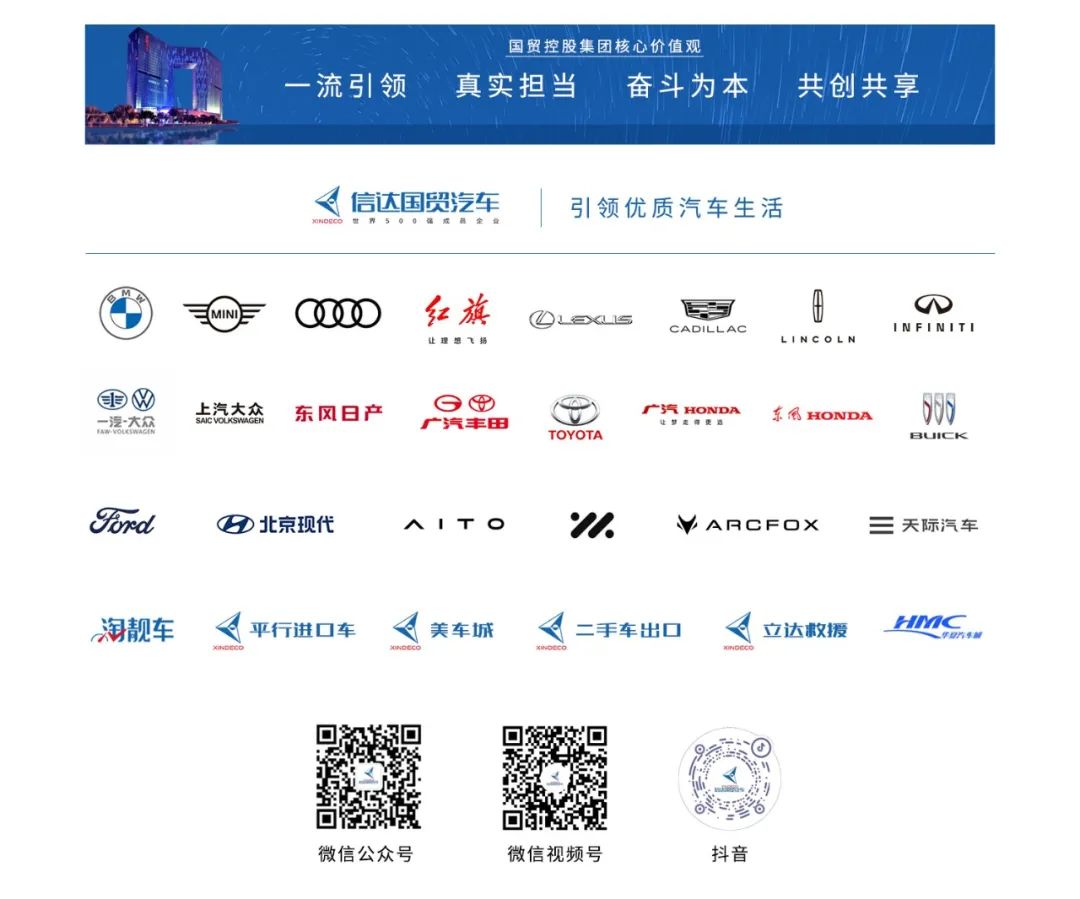 汽車板塊是國貿(mào)控股集團(tuán)重要核心業(yè)務(wù)之一。近年來,信達(dá)國貿(mào)汽車直面挑戰(zhàn)搶抓機遇,不斷擴展新業(yè)務(wù)、新領(lǐng)域。品牌經(jīng)銷申請屢獲突破,北京紅旗、深圳紅旗、泉州紅旗、泉州林肯、福州賽力斯、廈門極狐、廈門智己、武漢智己一店、武漢智己二店等陸續(xù)獲批;新能源品牌發(fā)展壯大,二手車業(yè)務(wù)增長迅猛,數(shù)字化營銷模式創(chuàng)新發(fā)力,逐步實現(xiàn)銷售服務(wù)、售后服務(wù)的數(shù)字化、網(wǎng)絡(luò)化。信達(dá)國貿(mào)汽車將堅持以創(chuàng)新性形式服務(wù)廣大客戶,踐行國企擔(dān)當(dāng),履行社會責(zé)任。