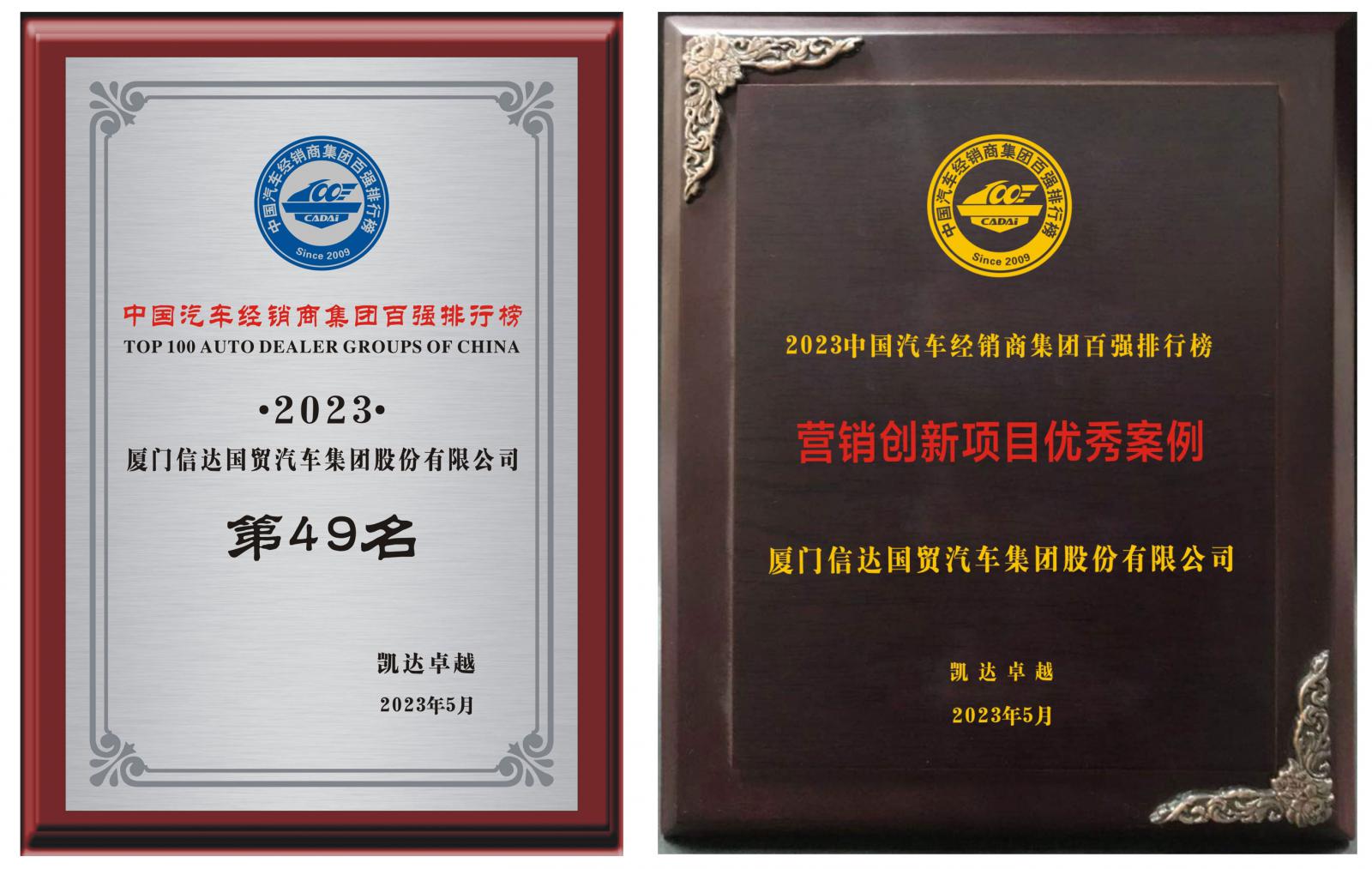 信達(dá)國貿(mào)汽車連續(xù)多年上榜,本年度位居第49位,較去年提升6位。同時(shí),信達(dá)國貿(mào)汽車憑借全方位數(shù)智化轉(zhuǎn)型與創(chuàng)新入選“2023中國汽車經(jīng)銷商營(yíng)銷創(chuàng)新項(xiàng)目?jī)?yōu)秀案例”。