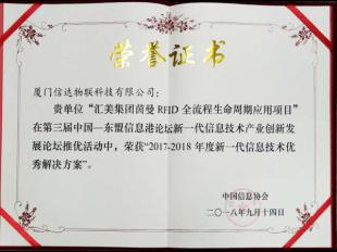 喜訊!信達物聯(lián)服裝項目再度獲評優(yōu)秀解決方案獎